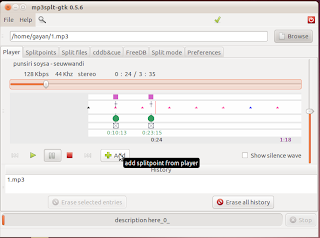 If you use Ubuntu 11.04, 10.10 and 10.04 then you can install MP3Splt-gtk 0.5.6 (current version) by entering the below command in your Terminal.